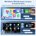 - 【Support with Wireless Carplay & Android Auto】Our HD touchscreen car stereo is compatible with Wireless Carplay and wired android auto, allowing superior voice assist control and making it easier to access your phone functions. You can voice to control, get turn-by-turn directions, make calls and send and receive messages, and listen to music all in a way that lets you stay focused on the road