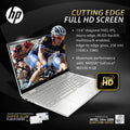 ترفيه غامر: شاشة رائعة تعمل باللمس فائقة الدقة بالكامل - شاشة 15.6 بوصة FHD IPS WLED بإضاءة خلفية WLED متعددة اللمس مزودة بزجاج من الحافة إلى الحافة 1920 × 1080 ، كاميرا ويب عالية الدقة HP Wide Vision مع ميكروفون رقمي مزدوج. لوحة مفاتيح فضية مع لوحة رقمية