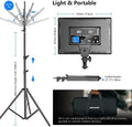 حوامل إضاءة ثابتة ومتينة: بحد أقصى. الارتفاع 75 بوصة. هيكل من سبائك الألومنيوم يمنحه قوة استثنائية للعمل الشاق. تضمن قدرات القفل الصلبة سلامة الأضواء. كما أنها تأتي مع حقيبة سفر لتخزين وتنفيذ الإضاءة والحوامل وجميع الملحقات بسهولة، وهي مناسبة للتصوير الفوتوغرافي في الهواء الطلق