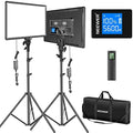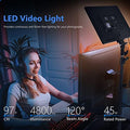 مصباح فيديو LED فائق السطوع: مصباح LED ثنائي اللون عالي الطاقة 45 وات، يتكون من 288 خرزة مصباح LED (144 أبيض و144 أصفر)؛ مؤشر كري 97+ عالي؛ النصوع يصل إلى 4800lux@0.5m، 1400lux@1m؛ لوحة إضاءة كبيرة جدًا مقاس 18 بوصة (زاوية شعاع 120 درجة)؛ الضوء الناعم مثالي للصور الشخصية/التصوير الفوتوغرافي للأطفال، وفيديو يوتيوب/الاستوديو، والبث المباشر، والمقابلات، والتصوير الفوتوغرافي للأعمال