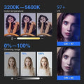 ضوء ناعم ثنائي اللون وخافت للضوء: يمكن تعديل درجة حرارة اللون من 3200 كلفن (دافئ) إلى 5600 كلفن (أبيض)؛ يمكن تعديل السطوع من 1% إلى 100%؛ تعرض شاشة LCD بوضوح معلمات السطوع ودرجة حرارة اللون، مما يساعدك على التشغيل بسهولة والعمل بكفاءة أكبر من خلال مقبضين