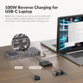 • 【USB-C MST & 100W Charging】 Each USB-C (MST) input port is designed with an adjacent USB-C charging port for dual 4K video output, 5Gbp/s data transmission, and simultaneous 100W laptop charging (original laptop power adapter required). 🚩Note: Certain USB-C laptops, especially those with integrated graphics, may not support dual 4K video output. Verify your laptop's video output capabilities.