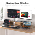 • 【Dual Screens, Double Productivity】This KVM switch dual monitor setup allows you to effortlessly connect 2 monitors to 2 laptops, enabling seamless switching between work and personal laptops to enhance productivity. 🚩Note: Mac OS can’t output extended dual screens.