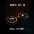 - الصوت من JBL: مكبرات صوت جديدة وقوية عالية الوضوح مقاس 40 مم تم تصميمها بشكل مثالي على يد خبراء JBL، مع معالج موسيقى محسّن وثلاثة ملفات صوتية مُعاد تصميمها.
