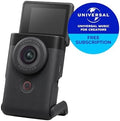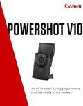 مجموعة أدوات تسجيل الفيديو PowerShot V10 من Canon - كاميرا فيديو لتسجيل الفيديو بدقة 4K UHD بحجم الجيب - بلوتوث، واي فاي - زر واحد، شاشة قابلة للإمالة، ميكروفونات استريو مع فلتر للرياح - حامل مدمج متعدد المواضع، أسود