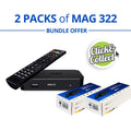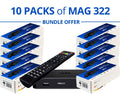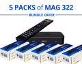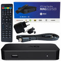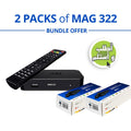 - MAG322 جهاز فك التشفير ، دليل المستخدم ، كابل HDMI ، محول الطاقة 12V 1A ، جهاز التحكم عن بعد ، 2 بطاريات AAA ، التغليف.