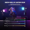 • 【وضع RGBCW و17 مؤثرًا خاصًا】 يمكن لمصباح الصور MS60C التبديل بين 4 أوضاع إضاءة: وضع CCT، ووضع HSI، ووضع RGBCW، ووضع التأثيرات الخاصة FX. يدعم وضع RBGCW التعديل الفردي على اللون الأحمر والأخضر والأزرق والأبيض البارد والأبيض الدافئ لألوان الإضاءة المخصصة. درجة حرارة اللون 2700K-6500K مع تصحيح الألوان -50/+50 جرام لتقليد الضوء الطبيعي بشكل أفضل، وزوايا تدرج كاملة 0-360 درجة، وتشبع 0-100%، و17 مؤثرًا خاصًا مبرمجًا مسبقًا تلبي جميع احتياجاتك لتصوير الفيديو الإبداعي