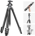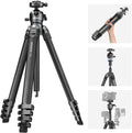 • NEEWER LITETRIP LT38 61" Travel Tripod Carbon Fiber for Camera, 360° Pan Tilt Low Profile Ball Head, Flexible Center Axis, Arca QR Plate Compatible with Peak Design Tripod Clip V3, Max Load 22lb