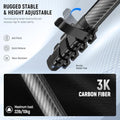 • 【Compact, Lightweight but Stable Travel Tripod】 Crafted from carbon fiber, this LITETRIP LT38 compact camera tripod weighs only 3.15lb/1.43kg but enhances its maximum load capacity to 22lb/10kg, even upgraded with all metal height adjustment buckles and nonslip rubber feet for added stability. Tightly fitted legs fold down to a handheld diameter of 2.7"/7cm and a compact folded length of 19.7"/50cm, with a storage bag for easy portability
