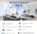 - ACOUSTIC DESIGN: The BRAVIA Theatre Bar 6 features powerful up-firing speakers for height, and woofer units for deep, rich bass, to fill your room with cinema-like sound.