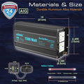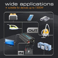 - 【1500W Pure Sine Wave Power Inverter】Provides 1500w 12v to 240v continuous power,coming with 2 AC outlets and 2.4A USB ports.