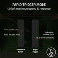 - RAPID TRIGGER - A step up from traditional mechanical or optical keyboards to achieve the most responsive and precise inputs; reset keys at the slightest lift of a finger, and experience an advantage in speed that is especially useful for movement in competitive FPS games