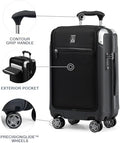 - The bin has been tested to fit in the bins of most major airlines, while allowing for more packing capacity. PrecisionGlide system provides precise control and effortless rolling with a Contour Grip, PowerScope Lite handle, and MagnaTrac self-aligning magnetic spinning wheels.