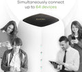 - 2.4/5GHz dual concurrent WiFi sharing with up to 64 devices