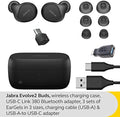 - In the box: 1x Jabra Evolve2 Buds In-Ear, Qi-certified Charging Case, USB-C Link 380 Bluetooth Adapter, EarGels in 3 Sizes, Charging Cable and USB-A-USB-C Adapter. Weight: 5.4 g / 0.2 oz, Black