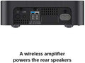 - WIRELESS AMPLIFIERS: A wall mountable wireless amplifier powers the rear speakers, so there are no wires between the front and rear of your room to get in the way while you're enjoying your favourite content