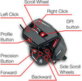 • Multi-button functionality for maximum precision and control, including: acroll wheel, left click, right click, DPI button, forward, backward, precision button, profile button, and a side scroll wheel (customizable within software). Uses PIXART PMW3389 Sensor for precision control.