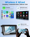 • 【Wireless Carplay & Android Auto & Mirror link】 Radio for VW Passat can choose wireless carplay wired android auto, connect to mobile phone, access mobile phone address book, mail, notification, map navigation, music, video and other information, and realize voice control. Support connect your smartphone to the device via a USB cable or WIFI, and mirror your phone's screen on the device's display. You can use your phone's apps, music, videos, and more on the device.