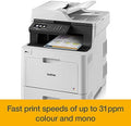 - PRINTER SCANNER COPIER: Increase efficiency with fast print speeds of up to 31ppm (colour and mono), automatic 2-sided printing and 2-sided scan speeds of 56ipm in colour and mono.