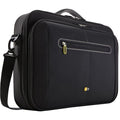 The 18" Laptop Briefcase from Case Logic can hold a laptop with up to an 18" display. The briefcase's large front compartment is big enough to hold a power cord, mouse, and other personal and laptop essentials. In addition to the large front pocket, the briefcase also has a front pocket for quick access items such as travel documents or a photo id, and a file compartment that protects papers and files while in transit. In addition to top handles, the bag also comes with a shoulder strap for hands-free transport and a luggage strap to attach the bag to the telescoping handle on your rolling luggage.