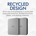 - Drive case and packaging is constructed using post-consumer recycled aluminum, plastic, and packing materials.